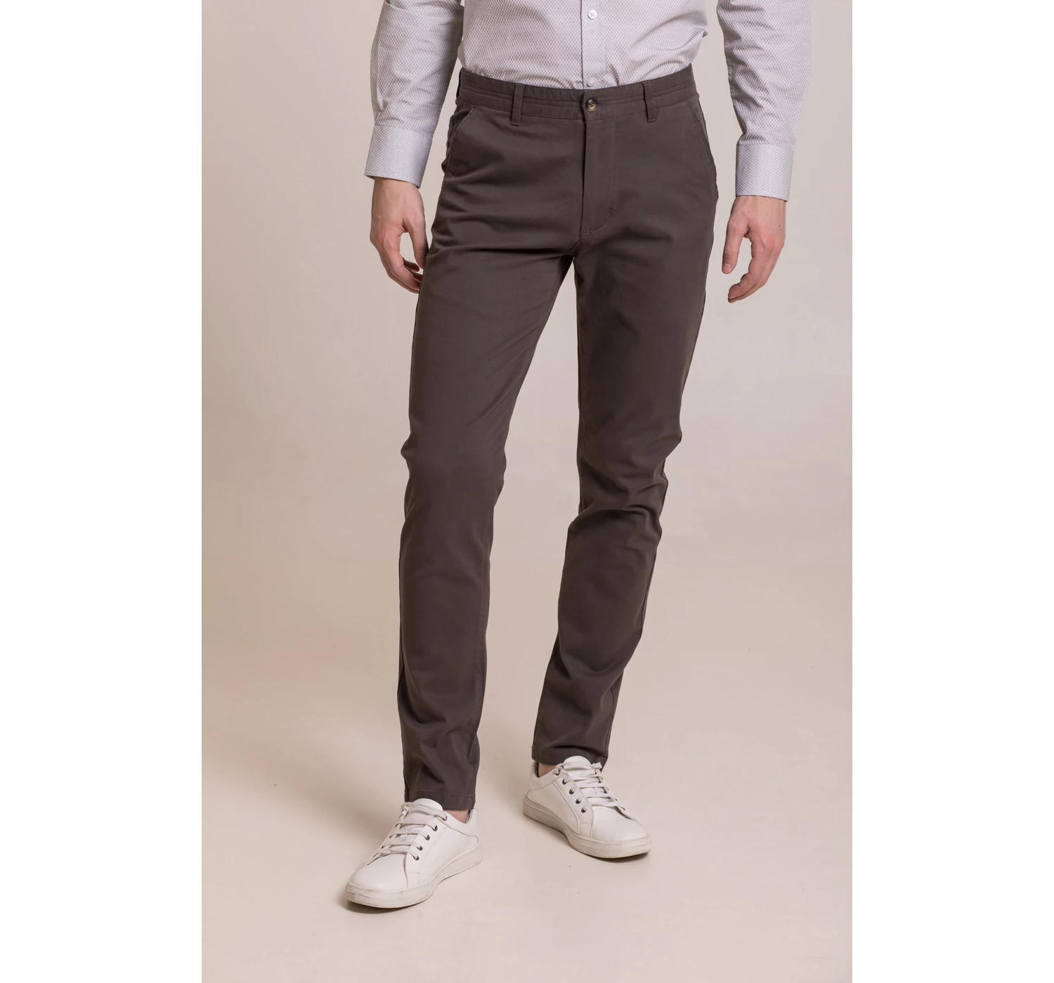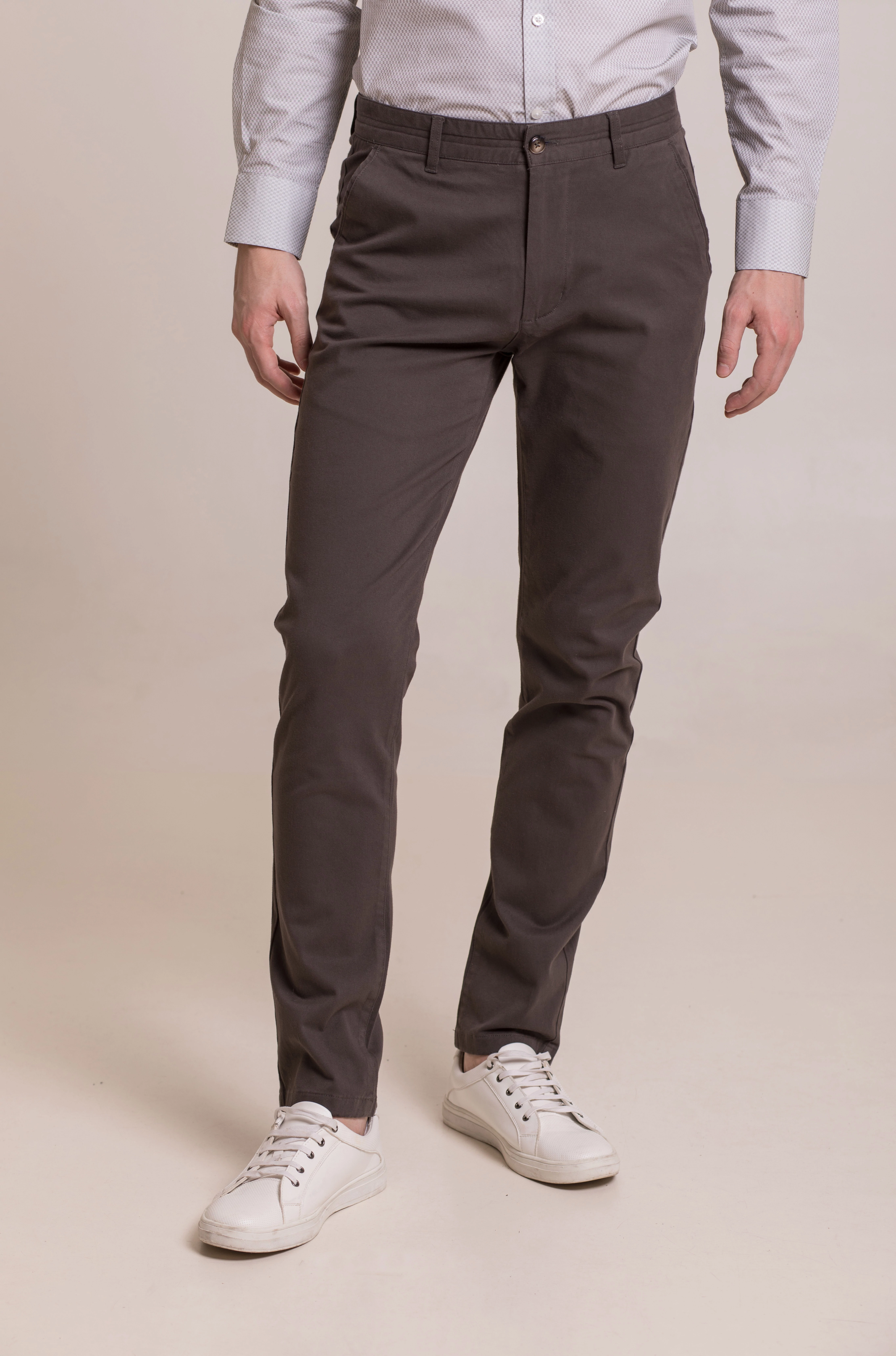 Slim-fit, szűkített fazonú svédzsebes nadrág, sötétszürke színű. Övbújtatós derékrésszel, eleje cipzáras záródással, derekán rávarrt bőr márkajelzéssel, márkafelíratos kellékekkel. Anyagösszetétel: enyhén elasztikus, 97%pamut-3%elasztán