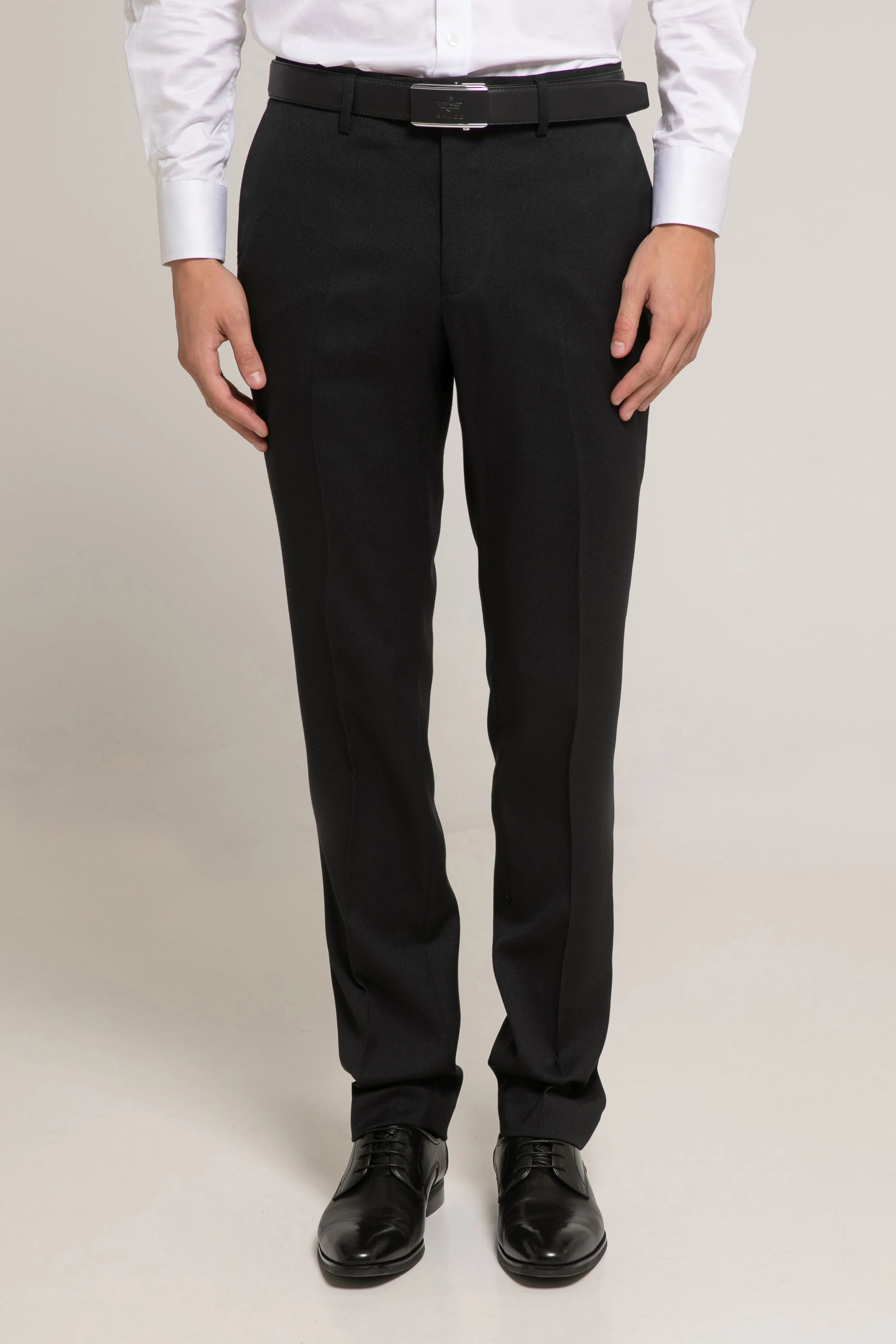 Fekete színű, élrevasalt klasszikus szabású öltönynadrág (bővebb fazonú), hátán kétszegélyes zsebekkel. Rugalmas alapanyagból készült. Anyagösszetétel: 83%poliészter-15%viszkóz-2%elasztane. Öltönyként a Haikon Casto zakóval kombinálható.